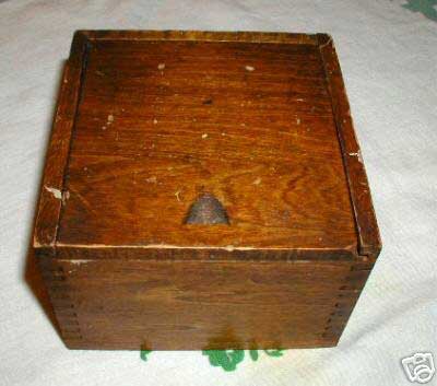 Box: original dovetailed wood with sliding top.